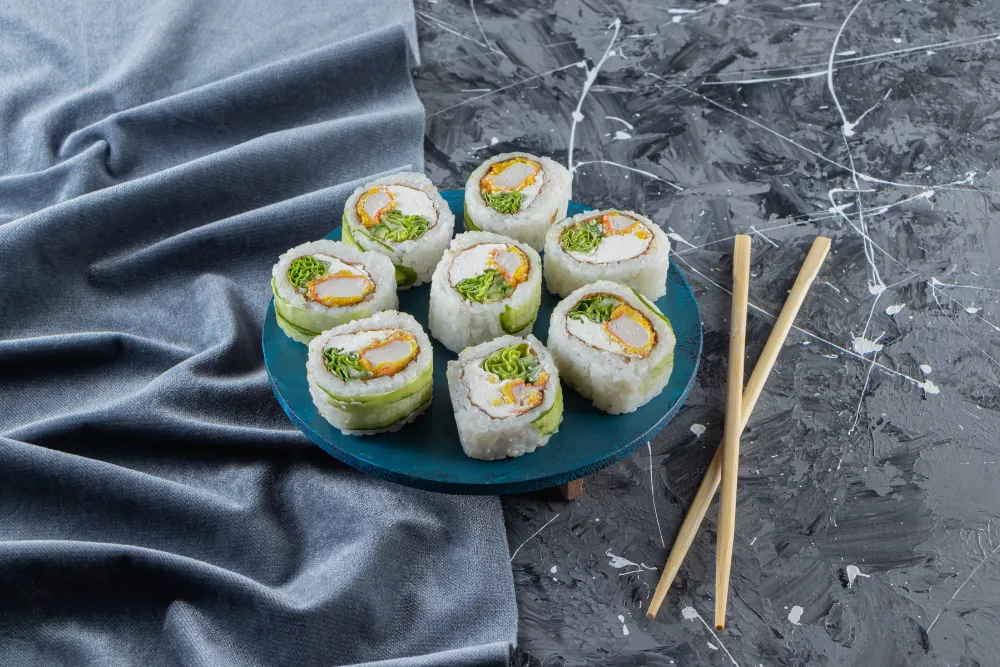 Wrap sushi rolls are a simpler version of sushi that you might like. Put crab sticks, rice, and cucumber in tortillas. Roll up tightly, cut, and serve with soy sauce.